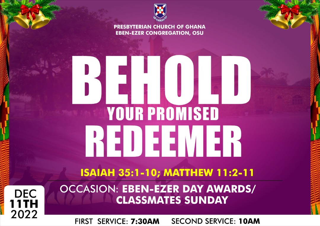 SUNDAY 11TH DECEMBER 2022:- EBEN-EZER DAY AWARDS /CLASSMATES SUNDAY FIRST SERVICE @ 7.30 AM & SECOND SERVICE @ 10.00 AM