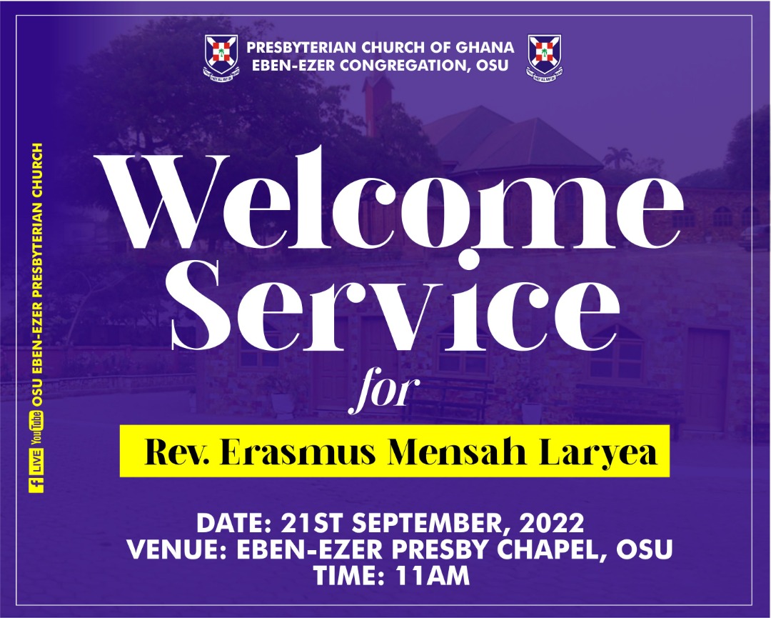 21ST SEPTEMBER 2022 WELCOME SERVICE FOR REV ERASMUS MENSAH LARYEA @ 11.00 AM IN THE CHAPEL
