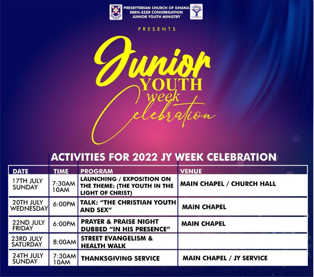 ACTIVITIES FOR 2022 JY CELEBRATION TONIGHT WEDNESDAY 20TH JULY 2022 @ 6.00 PM:- TALK: (THE CHRISTIAN YOUTH & SEX)