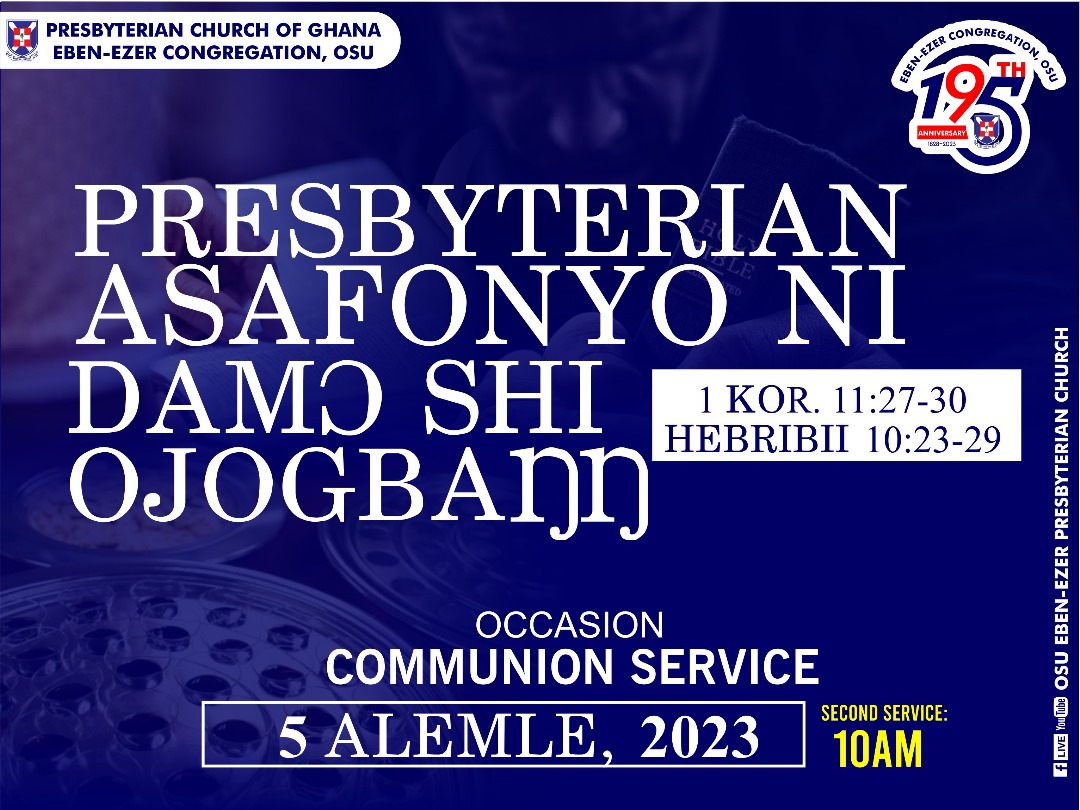 SUNDAY 5TH NOVEMBER 2023; COMMUNION SERVICE @ 7.00,AM