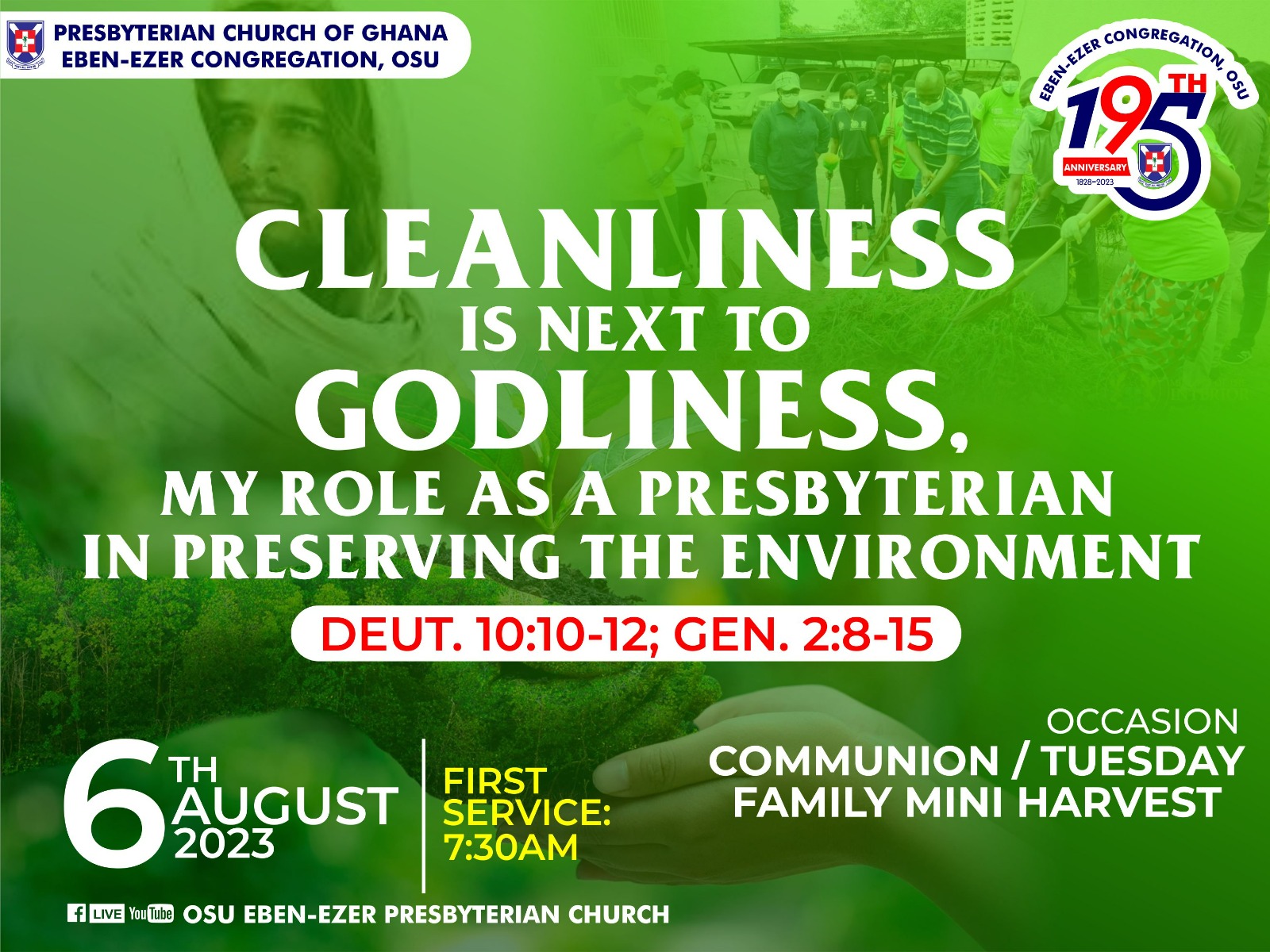 SUNDAY SERVICE (CLEANLINESS IS NEXT TO GODLINESS, MY ROLE AS A PRESBYTERIAN IN PRESERVING THE ENVIRONMENT)