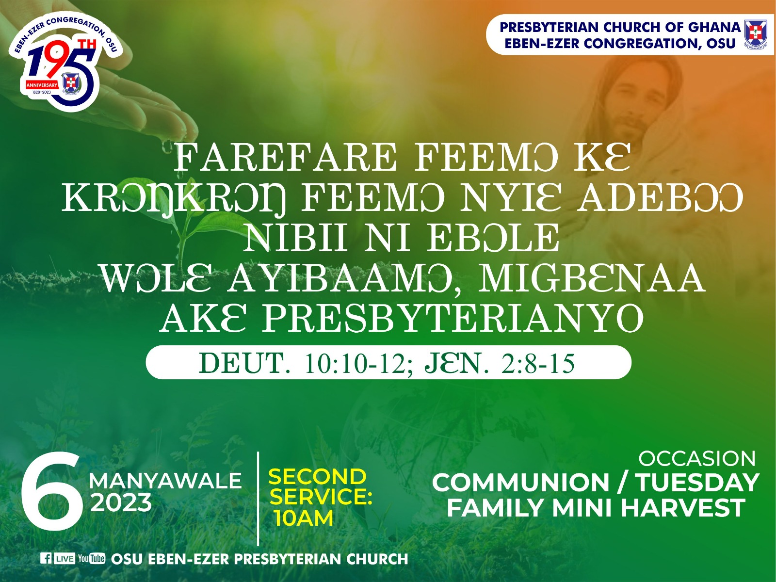 SUNDAY 6TH AUGUST 2023:- COMMUNION /TUESDAY FAMILY MINI HARVEST @ 7.30 AM