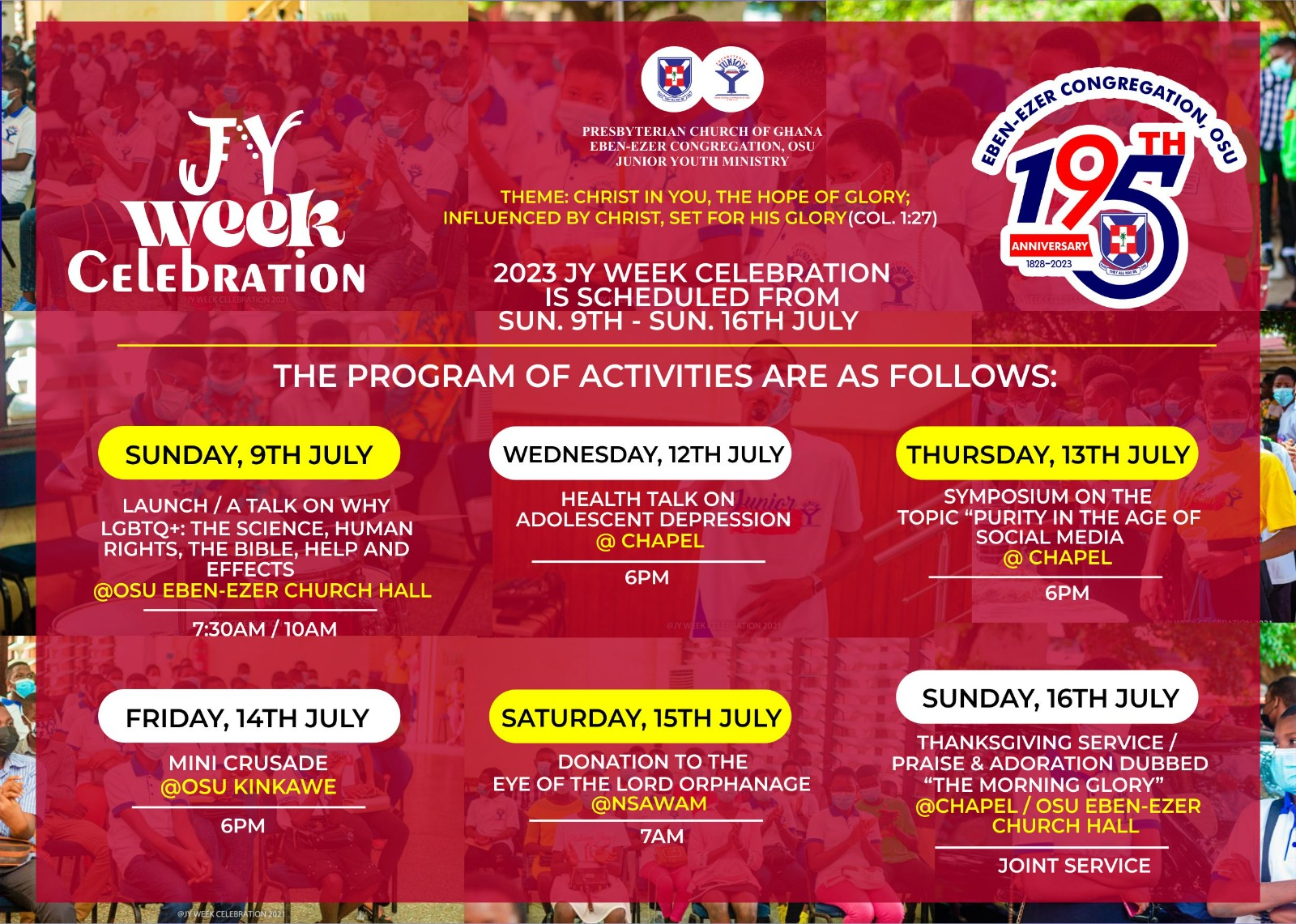 JUNIOR YOUTH CELEBRATION WEEK ( CHRIST IN YOU, THE HOPE OF GLORY:; INFLUENCED BY CHRIST, SET FOR HIS GLORY