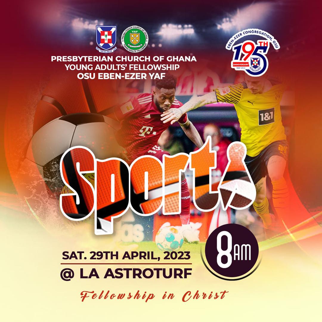 SATURDAY 29TH APRIL 2023:- SPORTS @ LA ASTROTURF @ 8 AM