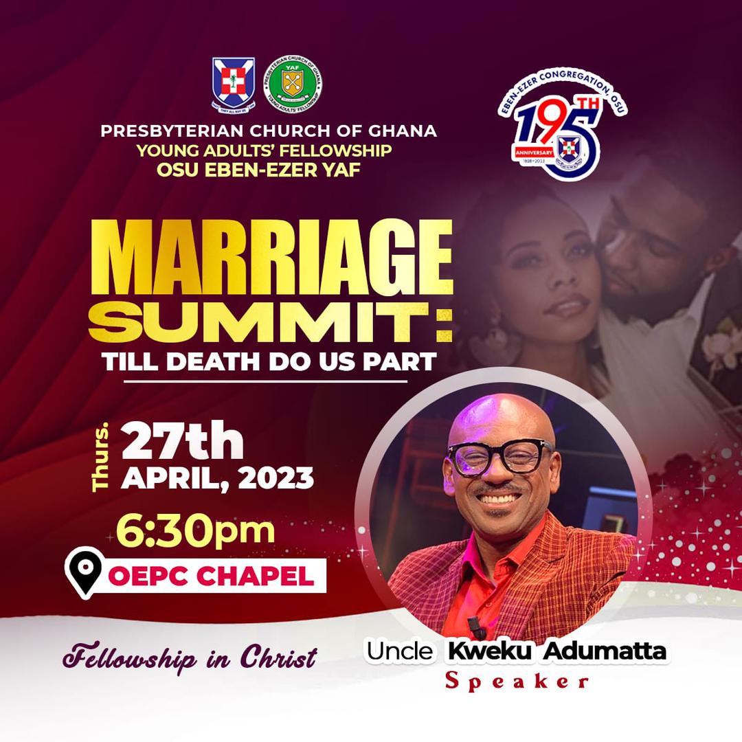 THURSDAY 27TH APRIL 2023 - MARRIAGE SUMMIT @ 6.30 PM