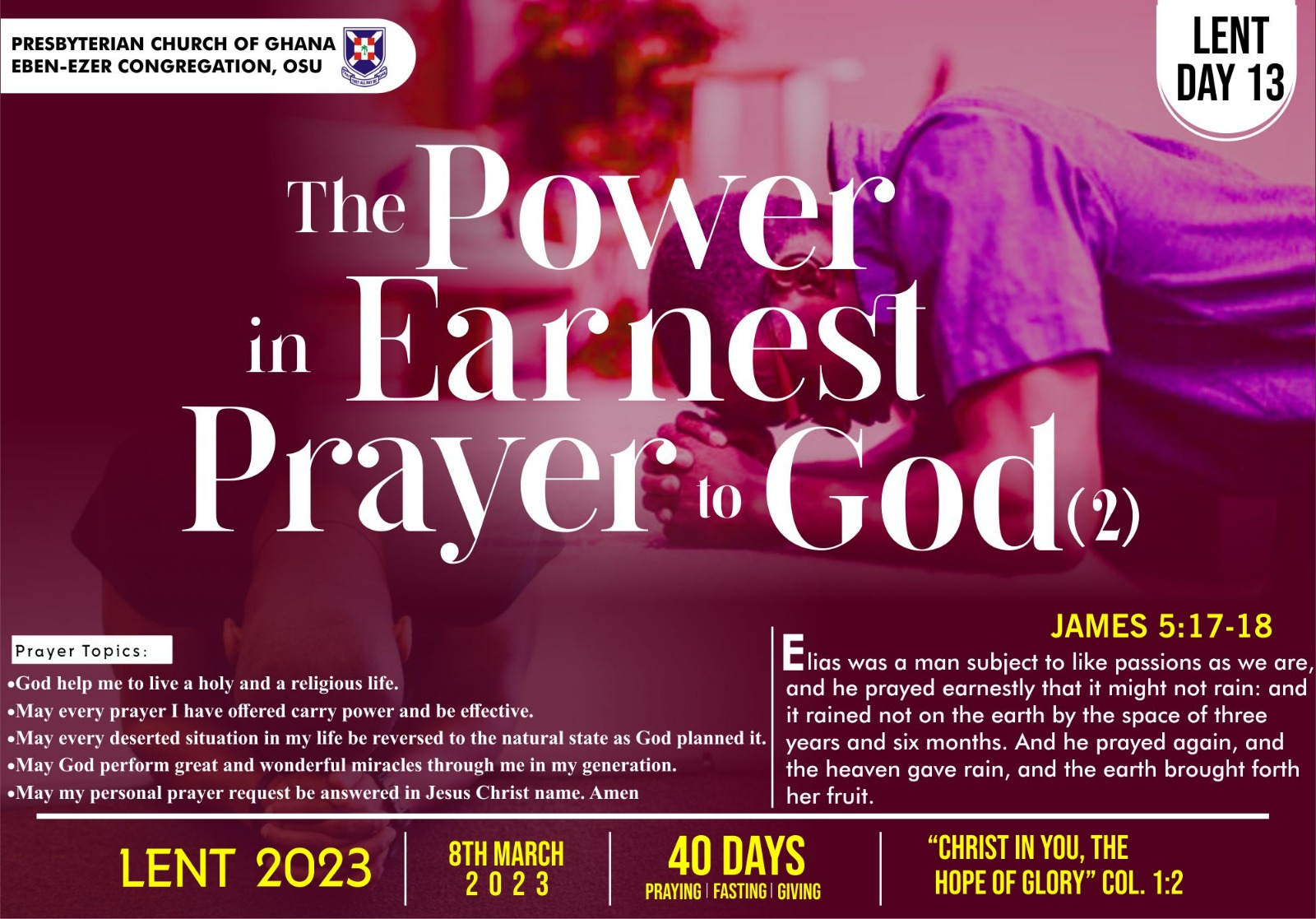 LENT DAY 13 (THE POWER IN EARNEST PRAYER TO GOD-2)